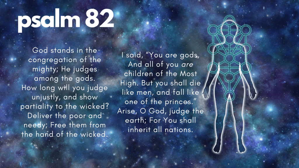 People in the New Age love to quote this verse about being gods as though it somehow makes them invincible angels, which it does not. What it clearly says is that angels/heavenly host (or elohim in the ancient Hebrew language) are destined for the same fate as humanity if they too oppress others and victimise them.